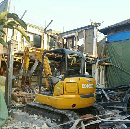 弊社では木造・RC造、鉄骨造のあらゆる構造物の解体工事を中心に、内装改修工事やアスベスト除去工事、土木工事等幅広く対応しております。