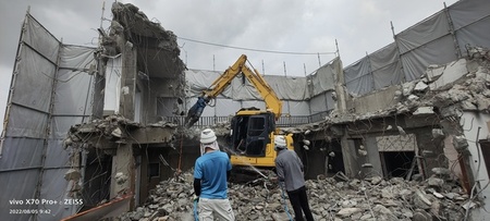 閑静な住宅街の為、作業開始時間を9時以降に変更し機械は、ブレーカー作業とせず圧砕機を使用して苦情なく工事完了をしています。